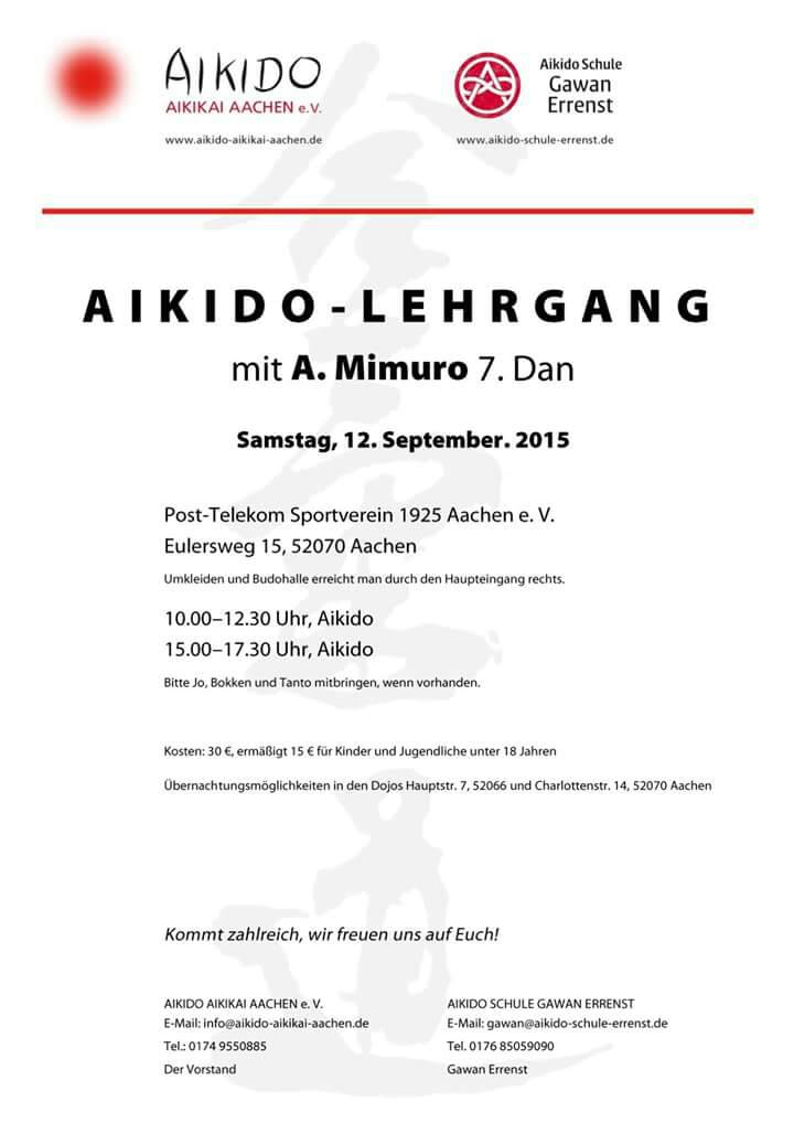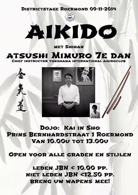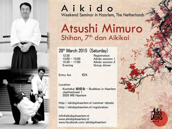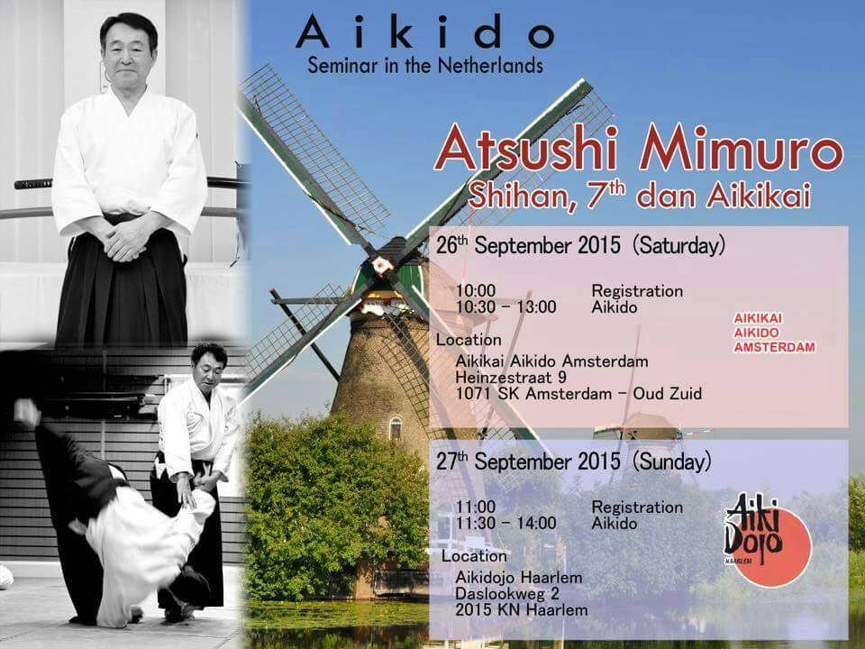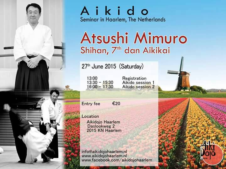 オランダのアムステルダムとハールレムでの合気道講習会の予定が決まりました。 9月26日(土)10時30分〜13時 アムステルダム道場(Aikikai Aikido Amsterdam)にて 9月27日(日)11時30分〜14時 ハールレム道場(Aikidojo Haarlem)にて です。 明日の9月12日(土)はドイツのアーヘンで合気道セミナーを実施します。 |