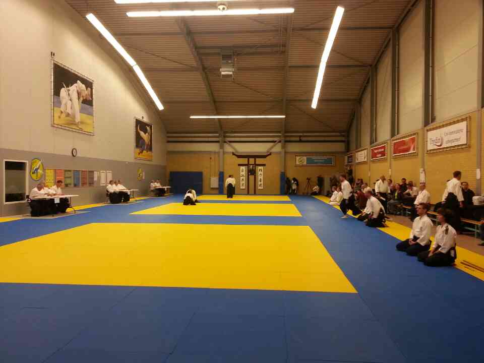 2014年10月12日(日)はマーストリヒトから240kmほど離れた Lelystad(レリースタット)の"De koploper デコープローパー"というスポーツ施設へ行って来ました。 そこで、JBN(Judo Bond Neserland 会員数は約5万人)という合気道団体(柔道団体の一部が合気道で約1200人の会員)の昇段審査を見学し、合気道の重鎮の二人にお会いしました。 一人は79歳の七段、もう一人は76歳の七段のピエールさんです。そして、ピエールさんは、参加者達に私の紹介をして下さいました。 話しは少しそれますが、ピエールさん達が数十年前に合気道を始めたときから JBN に世話になっているので 色々な意味でも 恩義や利便性があり、柔道団体から独立するのはとても難しいようなことを言っていました。 昇段審査は4ブロックに分かれ、2ブロックが合気会の合気道、他の2ブロックは気の研究会の合気道、そして武道合気道という団体の審査を同じ会場で行っていました。 とにかく日本とは少し違った複雑な組織だと思います。 |