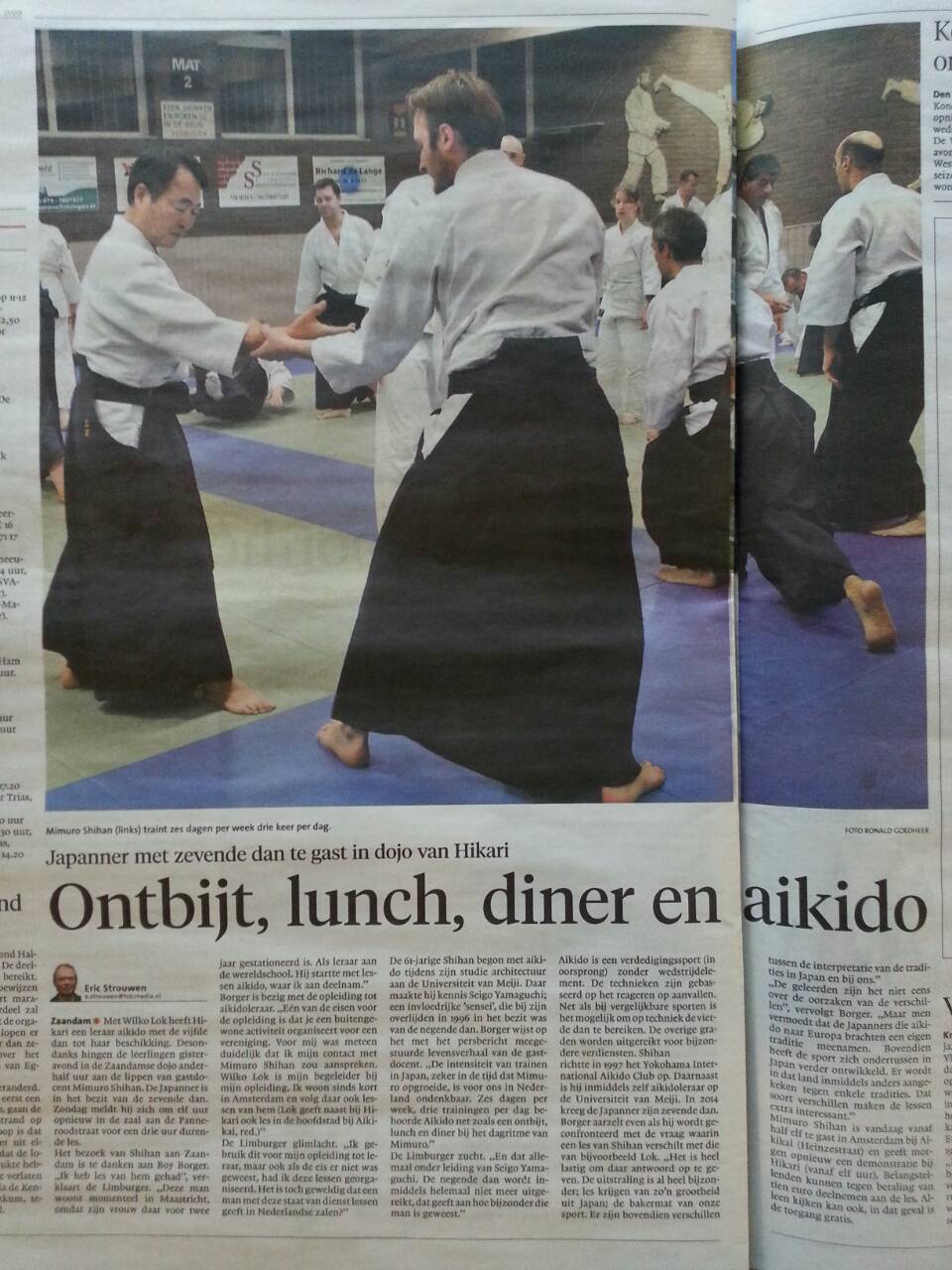 オランダ北部地方向けの新聞です。 ザーンダム道場での稽古風景です。 |