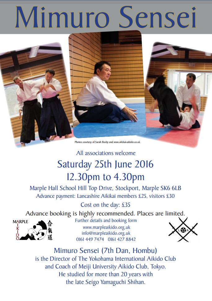 6月25日のイギリス マープル合気道セミナーのポスターです。 これが今年のヨーロッパでの最後のセミナーになると思います。 |